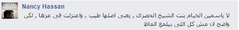 أما نانسي حسن فانتقدت الصورة قائلة: “لا ياسمين الخيام بنت الشيخ الحصري، يعني أصلها طيب، واعتزلت في عزها، لكن واضح إن مش كل اللي بيلمع ألماظ”.