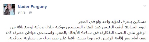 وكتب “فرجاني”، منشورا له عبر صفحته الرسمية على موقع “فيس بوك”: “عبفتاح، رغم الغش، رسب في ألمانيا، فرتبوا له ملحق “كوسة” في المجر”.