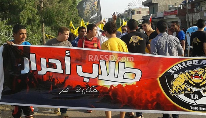 نظم التحالف الوطني لدعم الشرعية مسيرة انطلقت من أمام بيتزا كينج بمنطقة الجلاء بالمنصورة، وهتف المشاركون فيها ضد ما أسموه بـ”فساد السفاح ووعوده الكاذبة”، ورفعوا لافتات بعبارات ‫‏#الخازوق و‫#‏سنتك_سودا.