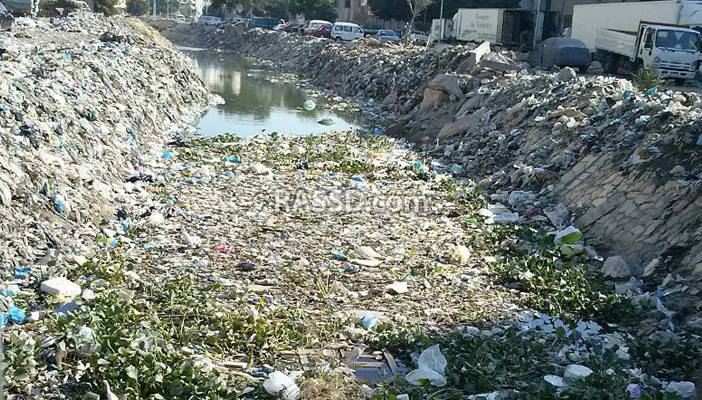 قمامة  وورش ميكانيكا وغرف لبيع المواد المخدرة على جانبي ترعة المحمودية