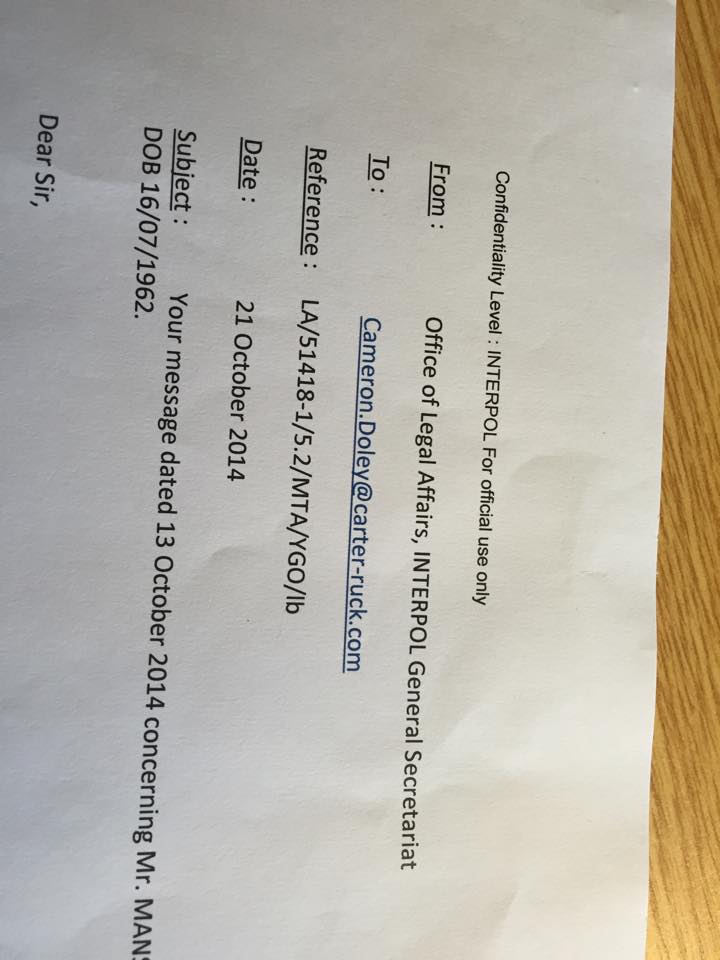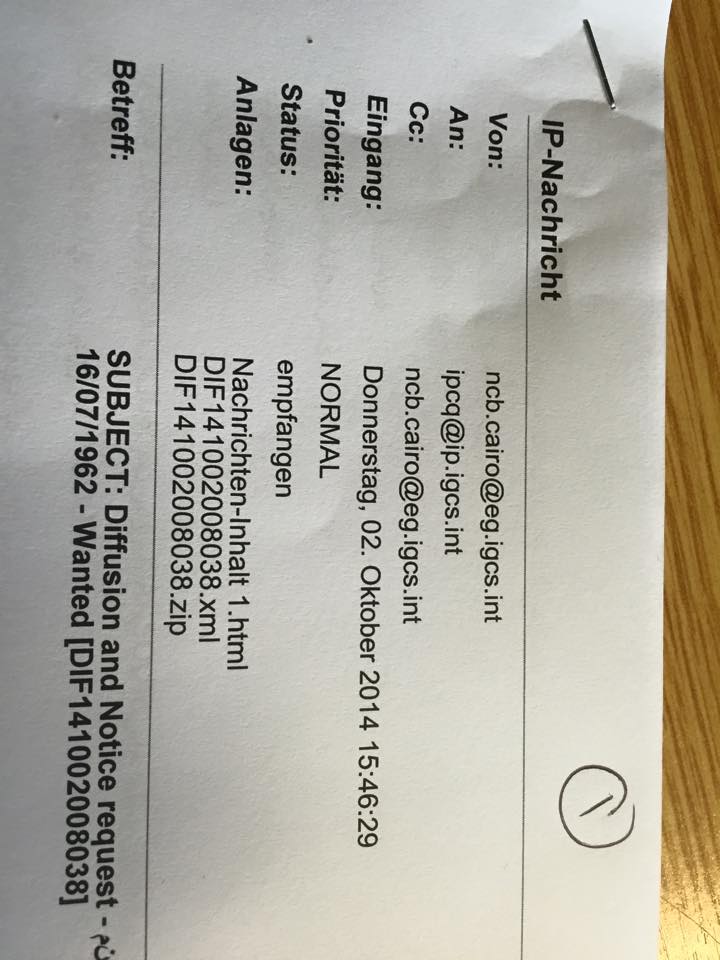 صورة لأمر الإعتقال الصادر بحقى من السلطات المصرية عبر الإنتربول بتاريخ 2 أكتوبر 2014 وصورة من شهادة الإنتربول… http://t.co/dOVIbO7Byf
