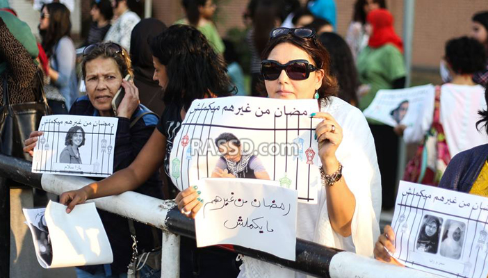 وكثفت قوات الأمن من وجودها بالقرب من الوقفة التي رفع خلالها المشاركون لافتات: “رمضان من غيركم مايكملش”، بالإضافة إلى صور المعتقلين.