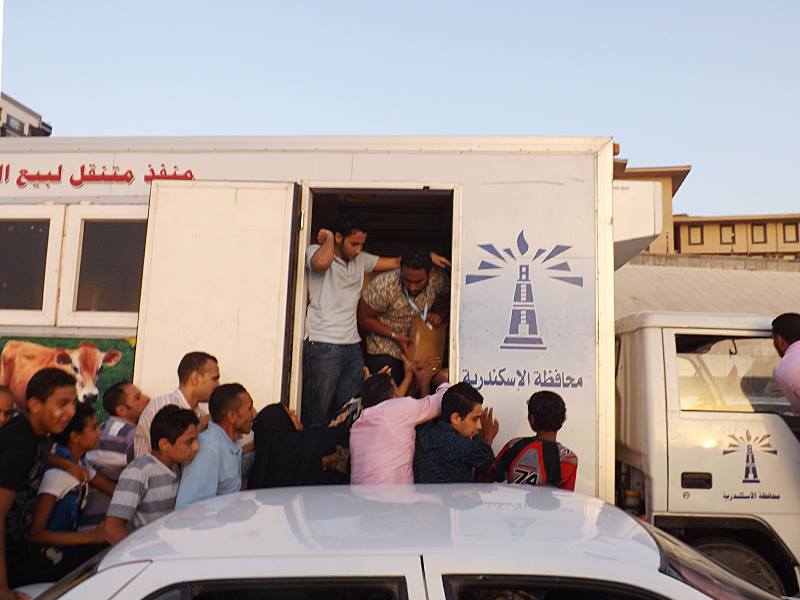 بدأ توزيع الوجبات على المواطنين في تمام الساعة السادسة والنصف، وبعد نزول أول سيارة محملة بالوجبات، قام بعض المواطنين بالتجمع حول السيارة لاستلام الوجبات، إلا أنه تم رفض إعطاء الوجبات للمواطنين وإجبارهم على الرجوع إلى أماكنهم، مما أثار الغضب لديهم، وإصرارهم على أخذ الوجبات من السيارة بالقوة، وسط حالة من التدافع بين المواطنين، وقفز البعض فوق السيارة، فقاد السائق السيارة بطريقة جنونية، مما جعل المواطنين يسقطون ويرتطمون بالأرض من شدة السرعة، فيما تكررت هذه الواقعة أكثر من ثلاث مرات، ولم يتم توزيع وجبات على المواطنين إلا في جزء بسيط جدًا؛ وهو المخصص للشخصيات المهمة، والذي أطلق عليه مقاعد VIP.