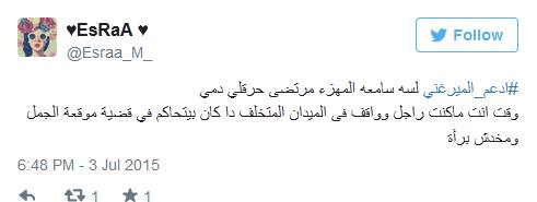 ودشن مستخدمو موقع التدوينات القصيرة «تويتر»، في وقت مبكر السبت، هاشتاج بعنون «ادعم_ الميرغني» لمساندة أحمد الميرغني. وتفوق الميرغني على السيسي جماهيريًا؛ حيث دعم الجميع موقع الأول والتعبير عن رأيه، وسط إنكار واضح للثاني وعدم ترك اللاعب في التعبير عن رأيه.