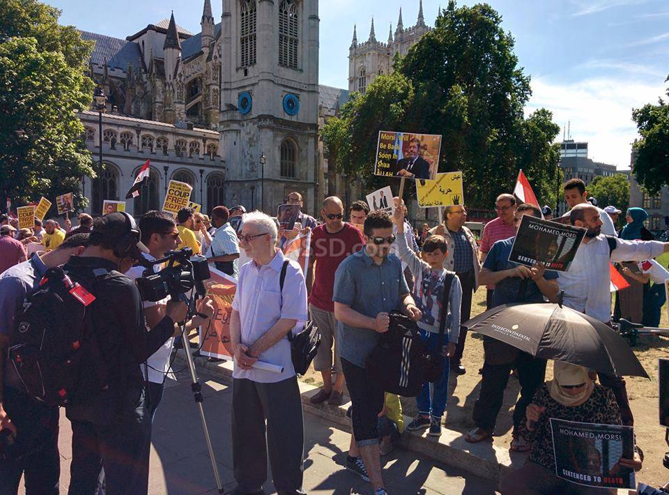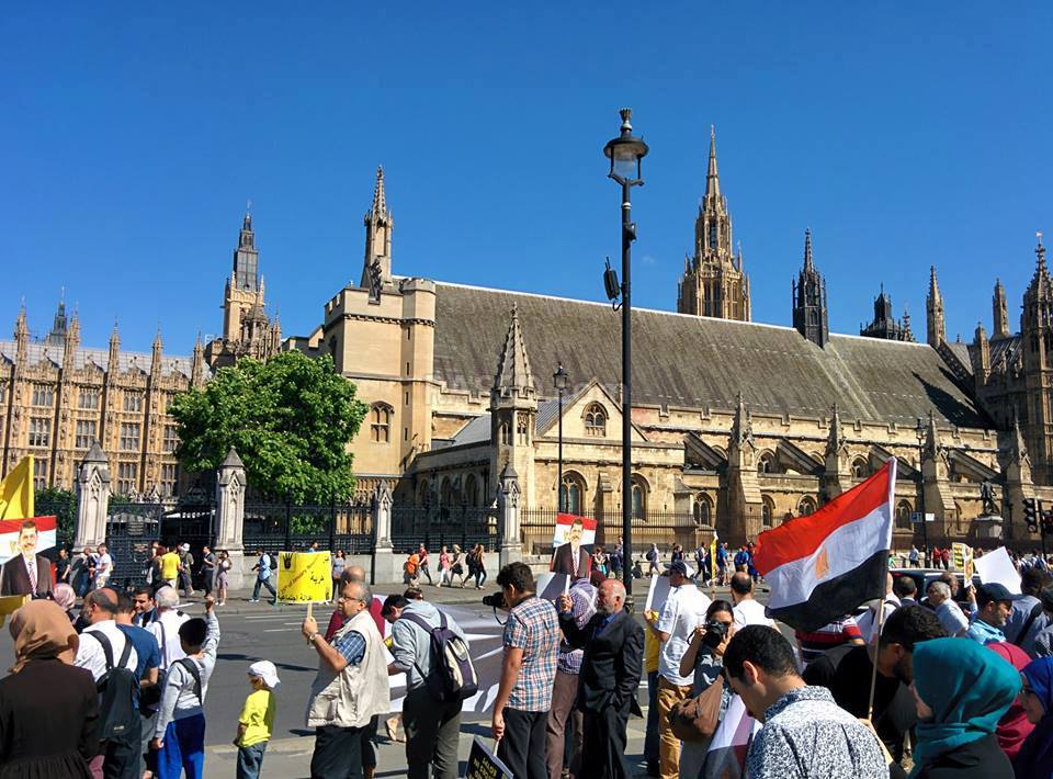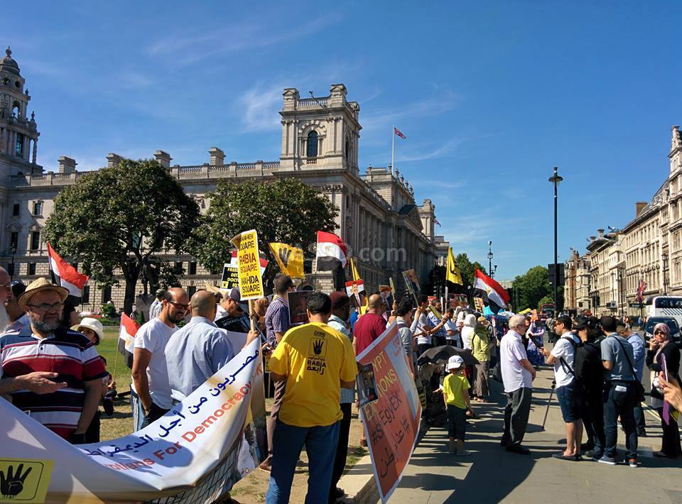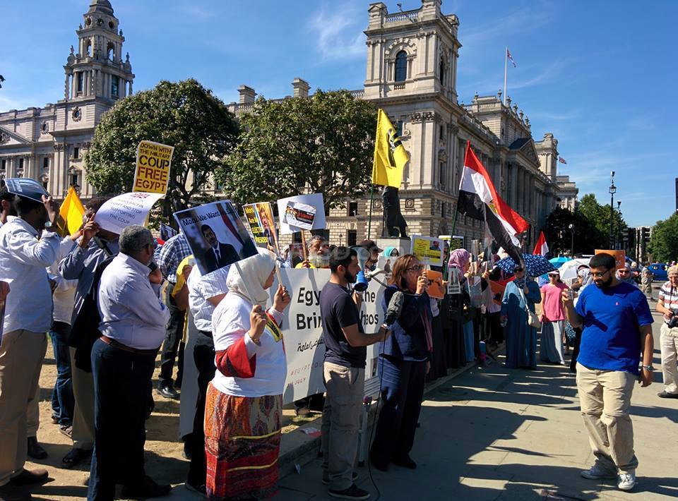 وشارك في التظاهرة المئات ما بين الجالية المصرية وآخرين بريطانيين مناهضين لحكم العسكر في مصر.