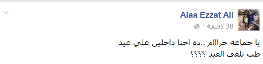 وقال Alaa Ezzat Ali: “يا جماعة حرااام.. ده احنا داخلين على عيد، طب نلغي العيد؟؟؟؟”.