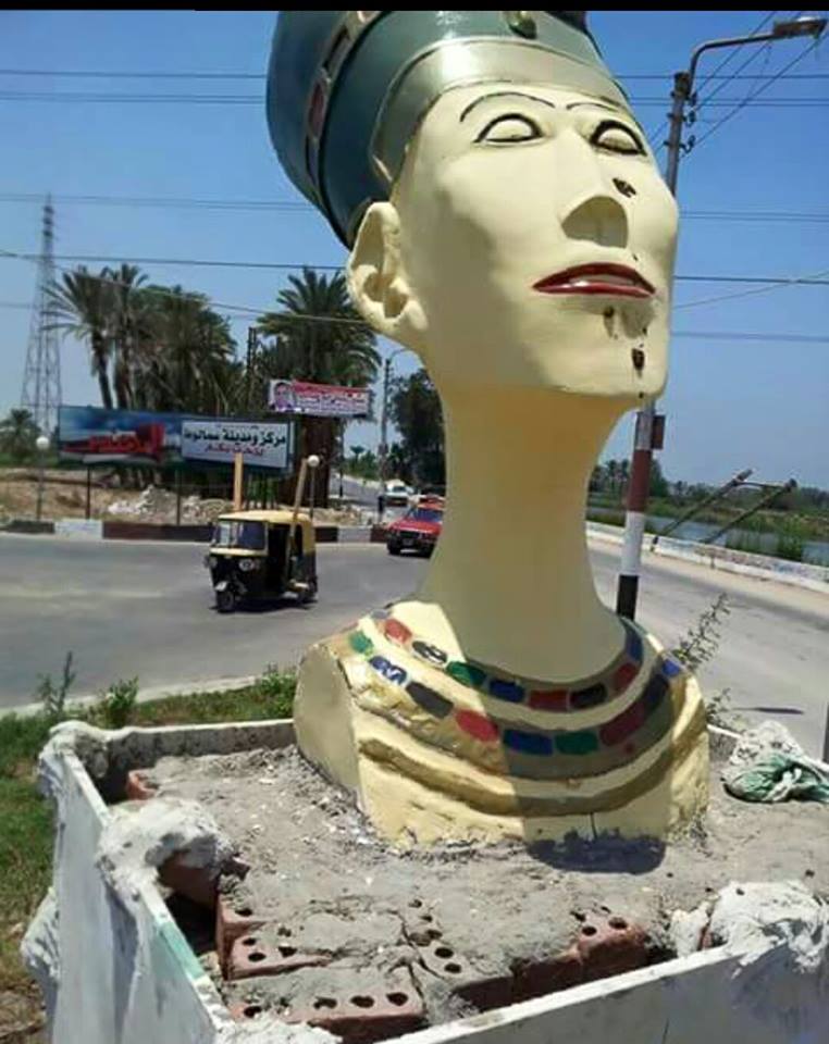 وكان قد وضع تمثال مشوه قبيح للملكة نفرتيتي بمدخل مدينة سمالوط، واجتاحت حالة من السخرية مواقع التواصل الاجتماعي، على إثرها أصدر محافظ المنيا، اللواء صلاح زيادة، قرارا بتحويل المسئولين للمحاسبة وإزالة التمثال،  فيما قال رئيس الوحدة المحلية بأنه سيقوم بوضع حمامة سلام بدلا منه
