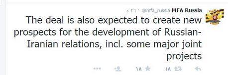 وغردت وزارة الخارجية الروسية: “من المتوقع إنشاء آفاق جديدة لتطوير العلاقات الروسية الإيرانية وإنشاء بعض المشاريع المشتركة الكبرى”.
