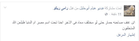 وقال رامى ريكو‏: “أي عنف صاحبه حمار، حتى لو مختلف معاه، في الآخر احنا تحت اسم مصر أم الدنيا فليلعن الله المتخلفون”.
