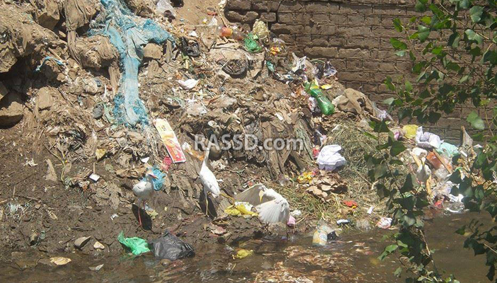 انتشرت القمامة في مداخل القرية حتى وصلت إلى أراضي الفلاحين لتختلط القمامة بمياه الري.