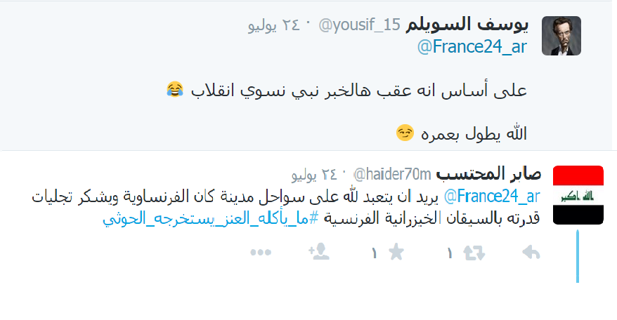 وذكر يوسف السويلم، مواطن سعودي، أنه “على أساس عقب هالخبر نبي نسوي انقلاب، داعيًا للملك بطول العمر”، بينما قال صابر المحتسب ساخرًا “يريد أن يتعبد إلى الله على سواحل مدينة “كان” الفرنسية ويشكر تجليات قدرته بالسيقان الخيزرانية الفرنسية”.