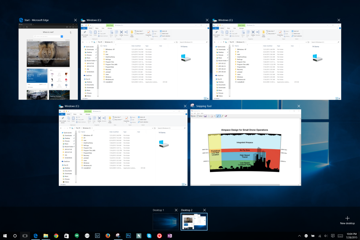 ولا يقتصر ويندوز 10 على الحواسيب المكتبية فقط، فلقد تمت برمجة النظام للعمل على أشكال الأجهزة المختلفة، من حواسيب شخصية وهواتف ذكية بالإضافة للأجهزة اللوحية، لتعلن بذلك عن ازدياد صعوبة المنافسة على غريميها، iOS الخاص بشركة آبل، ونظام الأندرويد الخاص بشركة جوجل، وإن كان الأخير صاحب أكبر نصيب من الانتشار.