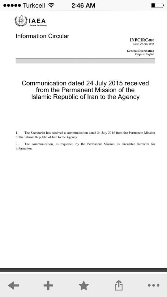 قال علي حسين باكير باحث في منظمة البحوث الاستراتيجية الدولية (أوساك)، أن ايران أرسلت رسالة إلى الوكالة الدولية للطاقة الذرية الاسبوع الماضي ونشرت على موقع الوكالة اول امس تشتكي فيها من انّ الولايات المتحدة الأمريكية