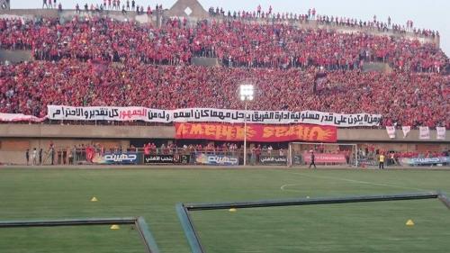رددت الجماهير الحمراء هتافات كان أبرزها: “الأهلي مش عزبة حد.. اللي بيخدم أهلاوي بجد”، “ركز بقى يا عم مصلحة الأهلي أهم”، كما قامت برفع لافتة مكتوب عليها “من لا يكون على قدر مسؤولية الفريق يرحل مهما كان اسمه وله من الجمهور كل تقدير”.