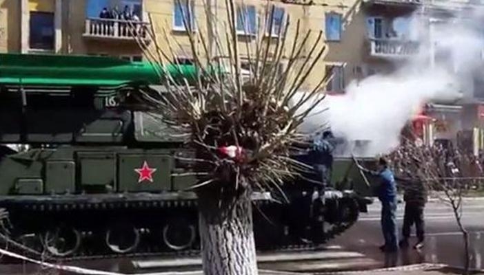 وظهر فيديو، تصاعد ألسنة اللهب من الدبابة ومحاولات الضباط الروس إطفاء الحريق، وكان العرض العسكري شارك فيه 15 ألف مجند و2300 من المحاربين القدامى، واستعرضت فيه 200 آلية عسكرية بينها الدبابة الروسية “أرماتا” التي تعرض لأول مرة، كما شاركت فيه القوات البرية والجوية والبحرية.