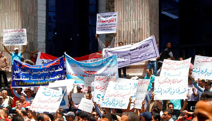 تتواصل فعاليات الوقفة الاحتجاجية للعاملين بالضرائب العامة وضرائب المبيعات والجمارك أمام نقابة الصحفيين بحضور آلاف الموظفين والعاملين بهذه الجهات، حيث أكد المحتجون على مطالبهم بإلغاء قانون الخدمة المدنية، وإقالة وزير المالية هاني قدري دميان، والذي يتهمه العاملون بأنه لم يجرِ معهم أو ممثليهم أي حوارات حول القانون أو لائحته التنفيذية، رافضين ما اعتبره استخداما لمنطق التعالي على الموظفين وفرض سياسة الأمر الواقع.
