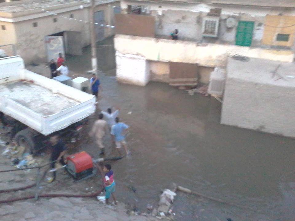 فيما قد قال آخر وهو أحد سكان منطقة بركة الدماس: “مياه الصرف الصحي غرقت المنطقة بالكامل ودخلت على البيوت”.
