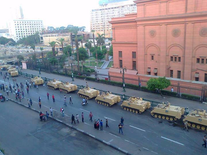 وتمركزت مدرعات الجيش والشرطة بجوار ميداني النهضة ومصطفى محمود بالجيزة، واختفت عناصر التمركز الأمني أعلى كوبري الجيزة.