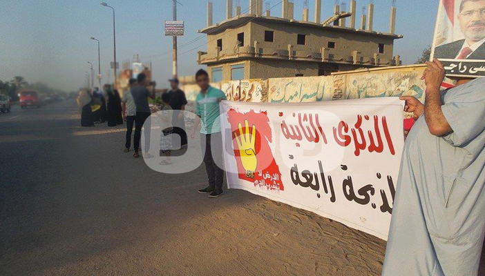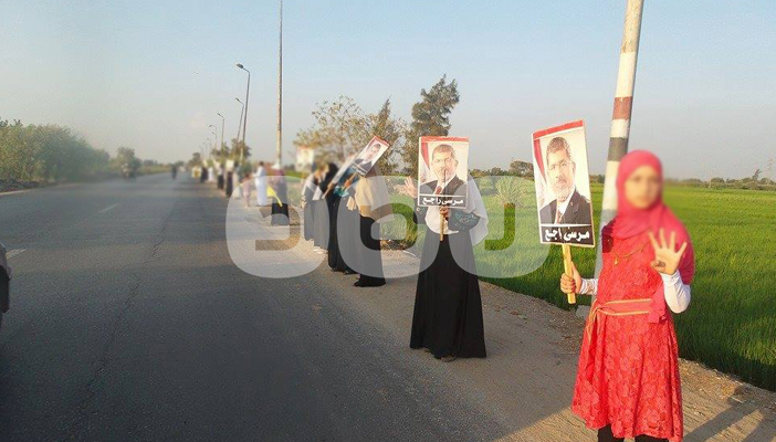 وجاءت السلسلة على طريق “المحمودية دمنهور” رفع خلالها المشاركون رايات رابعة وصور الدكتور محمد مرسي، ولافتات تطالب بالقصاص للشهداء وإطلاق سراح المعتقلين.