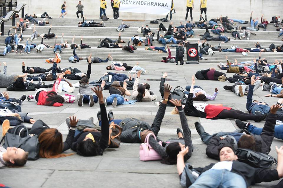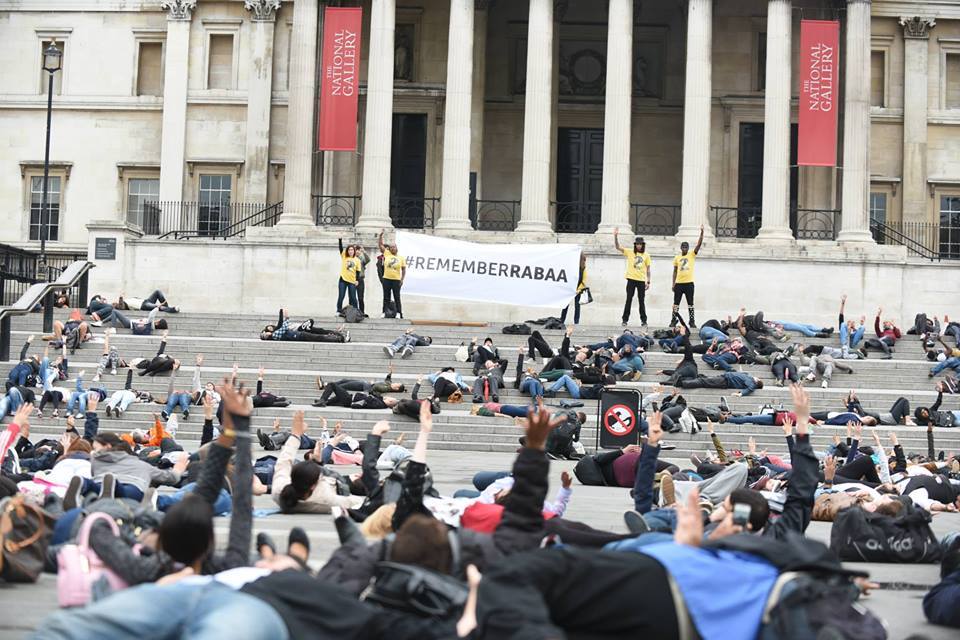 تناقل نشطاء على مواقع التواصل الاجتماعي، صورًا، قالوا إنها لأشخاص تجمعوا بوقفة بالذكرى الثانية لـ”مذبحة رابعة العدوية”، في ساحة الطرف الأغر في العاصمة البريطانية، لندن.