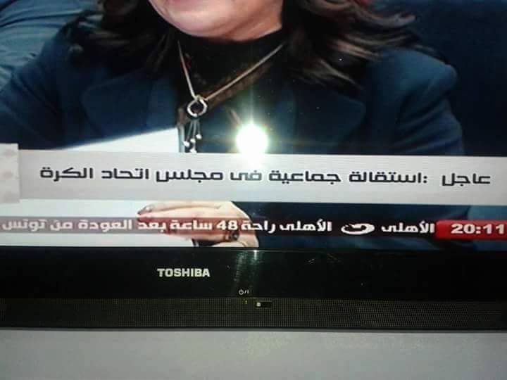 تداول نشطاء عبر مواقع التواصل الاجتماعي صورة لخبر عاجل على قناة النهار (رياضة) منذ لحظات قليلة عن استقالة جماعية في مجلس اتحاد الكرة.