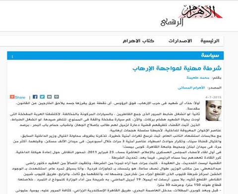 وخلال مقالته التي نشرتها تحت عنوان “شرطة مهنية لمواجهة الإرهاب” يحذر الكاتب محمد طعيمة من تكرار الهجمات والتفجيرات على المقرات الأمنية بعد واقعة مقتل النائب العام هشام بركات.