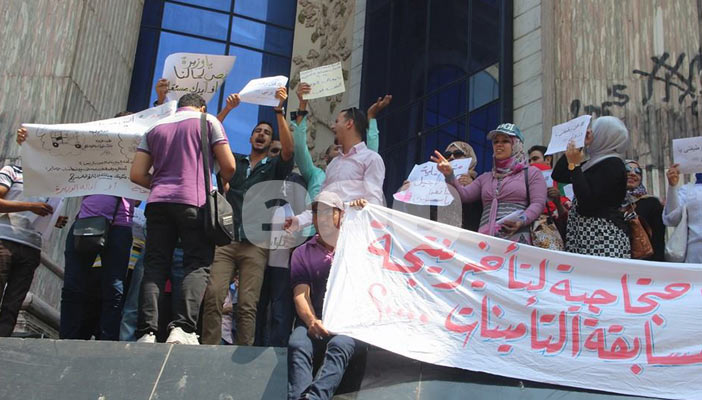 نظم المتقدمون لمسابقة التأمينات الاجتماعية، وقفة احتجاجية، اليوم الأحد، على سلالم نقابة الصحفيين؛ للمطالبة بسرعة إظهار نتيجة المسابقة.