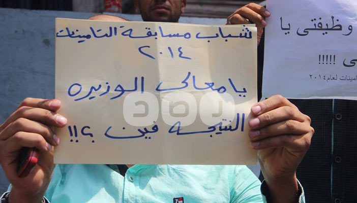 طالب المحتجون بإقالة وزيرة التضامن الاجتماعي، غادة والي، بعد أن تأخرت نتيجة المسابقة والتي أجريت في شهر مايو الماضي، وعقد لها امتحان القبول في الوظائف، وكان من المفترض أن تعرض النتائج.