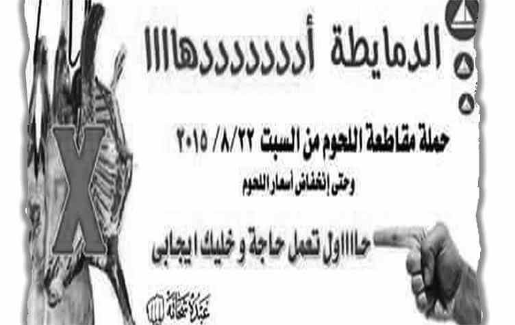 دشن مواطنون بدمياط حملة على صفحات التواصل الاجتماعي “فيس بوك”، تدعو لمقاطعة شراء اللحوم البلدية من الجزارين، وذلك بسبب الارتفاع الجنوني في أسعارها؛ حيث تجاوز سعر الكيلو واحد وتسعين جنيهًا.