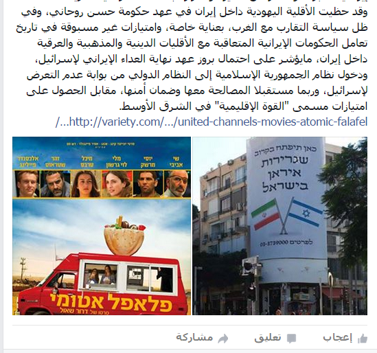 وأفاد “يلوح” بأن الأقلية اليهودية داخل إيران في عهد حكومة حسن روحاني، وفي ظل سياسة التقارب مع الغرب، قد حظيت “بعناية خاصة، وامتيازات غير مسبوقة في تاريخ تعامل الحكومات الإيرانية المتعاقبة مع الأقليات الدينية والمذهبية والعرقية داخل إيران، ما يؤشر على احتمال بروز عهد نهاية العداء الإيراني لإسرائيل، ودخول نظام الجمهورية الإسلامية إلى النظام الدولي من بوابة عدم التعرض لإسرائيل، وربما مستقبلاً المصالحة معها وضمان أمنها، مقابل الحصول على امتيازات مسمى “القوة الإقليمية” في الشرق الأوسط.”