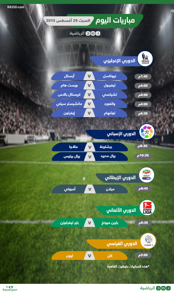 بالصورة.. تعرف على جدول مباريات اليوم “السبت”