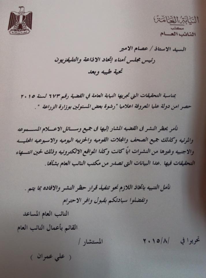 حالة من الغموض تسيطر على القضية المعروفة إعلاميًا بـ”رشوة بعض المسؤولين بوزارة الزراعة”، لا سيما في ظل القرار السريع الذي أصدره المستشار علي عمران، القائم بأعمال النائب العام،  أمس الأحد، بحظر النشر في القضية رقم 673 لسنة 2015 حصر أمن دولة عليا.