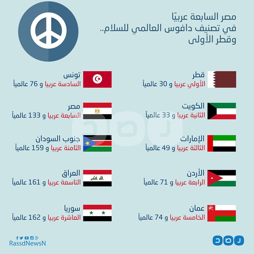 بالإنفوجرافيك.. مصر السابعة عربيا والـ133 دوليًا في تصنيف دافوس للسلام