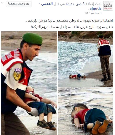وقد أثارت صور الطفل موجة من التعليقات على موقع التواصل الاجتماعي “فيسبوك”، فقد قالت صفحة راديو ميدان، إنه “حين يطفو الطفلُ السوريُّ المسلم كسمكةٍ نافقة على شاطئ المتوسط هربا من القصف البعثي.. بعد شهور من ذبح الطفل البورمي المسلم وقطع أثداء أمه قبل ذبحهما.. وبعد سنة من دفن الطفل الغزِّي على ثلاث مرّات إثر فرمة ثلاثة أشلاء بالقصف الإسرائيلي.. وبعد سنتين من اختناق الطفل المصري بغاز الأعصاب في ميدان عام.. وبعد سبع سنوات من استمرار وأد الطفل الأفغاني بين صخور بيته.. وبعد عشر سنوات من استمرار حرق الطفل العراقي باليورانيوم المنضّب”.
