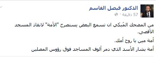 قال الكاتب السوري فيصل القاسم، تعليقًا على اقتحام القوات الإسرائيلية المسجد الأقصى، للمرة الثالثة، “من المضحك المُبكي أن تسمع البعض يستصرخ “الأمة” لإنقاذ المسجد الأقصى.”