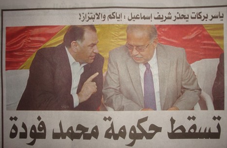 وهاجمت صحيفة “الموجز” حكومة شريف إسماعيل، ونشرت صورة تجمع بين إسماعيل وفودة، قائلة: “تسقط حكومة محمد فودة”.
