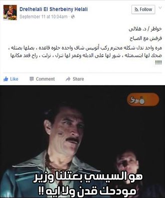 فور إعلان تعيين الدكتور هلالي الشربيني هلالي، وزيرًا للتعليم، انفجرت مواقع التواصل الاجتماعي سخرية من الوزير الجديد؛ بسبب حسابه على موقع الـ”فيس بوك”، والذي احتوى على الكثير من الأخطاء الإملائية والتعليقات الساخرة، كما انتشرت الكثير من “الكوميكسات” سخرية من الوزير.