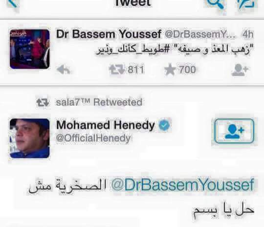 ويرد باسم يوسف: “ده حكيكي.. فين أيامك يا يصري” #طويط_كأنك_وذير.