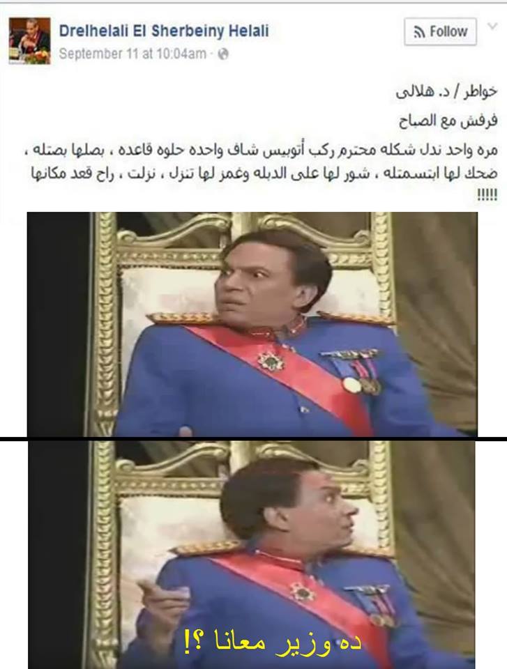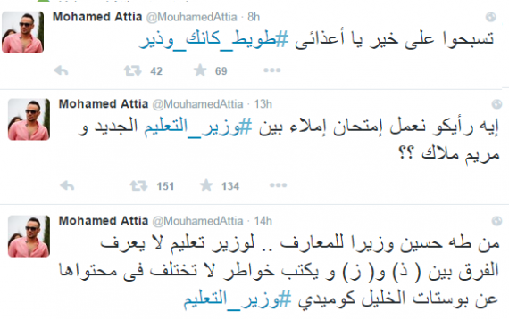 وأضاف “من طه حسين وزيرًا للمعارف.. إلى وزير تعليم لا يعرف الفرق بين (ز) و(ذ)”، ويكتب خواطر لا يختلف محتواها عن بوستات الخليل الكوميدي”.. تسبحوا على خير.