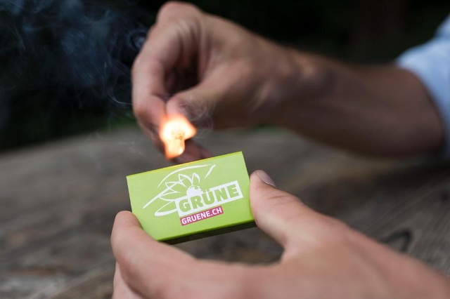 يستخدم السويسريون في الدعاية الأقلام وأعواد الثقاب وقطع الحلوى والشوكولاتة الصغيرة المزدانة بشعارات الحزب ومعلبات العسل ورابطات العنق ذات الألوان الزاهية.