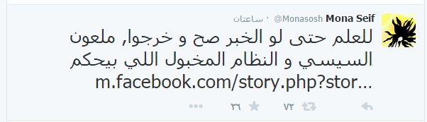 وقالت في تغريدة أخرى: “للعلم حتى لو الخبر صح وخرجوا، ملعون السيسي والنظام المخبول اللي بيحكم”.