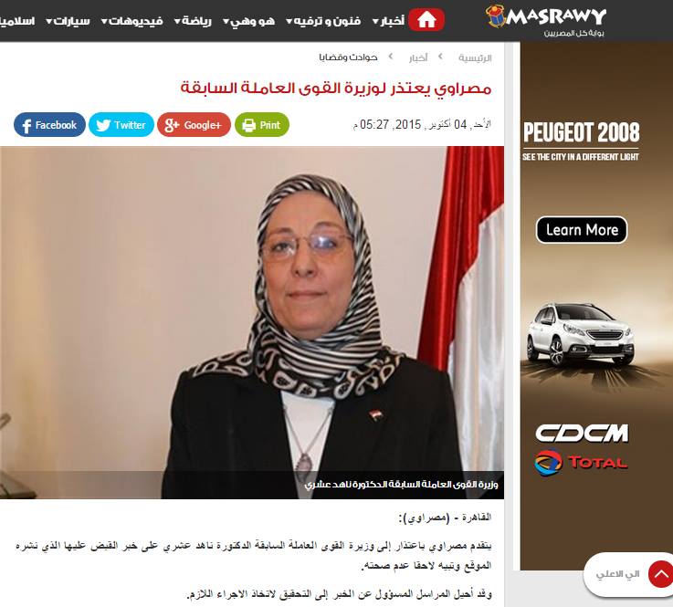 وتجدر الإشارة إلى أن عددًا من المواقع الإخبارية تناقلت خبر القبض على الوزيرة أيضًا، ولكن “مصراوي” سارع بالنفي والاعتذار للوزيرة، وهو ما يثير الكثير من علامات الاستفهام حول أمر الوزيرة.