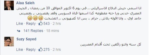 وشهدت الصفحة الرسمية لأدرعي اليوم العديد من التعليقات الساخرة من خسارة جيش الاحتلال أمام الجيش المصري في حرب 73.