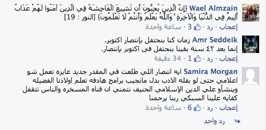 وسخر أحد رواد “فيس بوك”: “زمان كنا بنحتفل بانتصار أكتوبر، إنما بعد 42 سنة بقينا بنحتفل بانتصار في أكتوبر”.