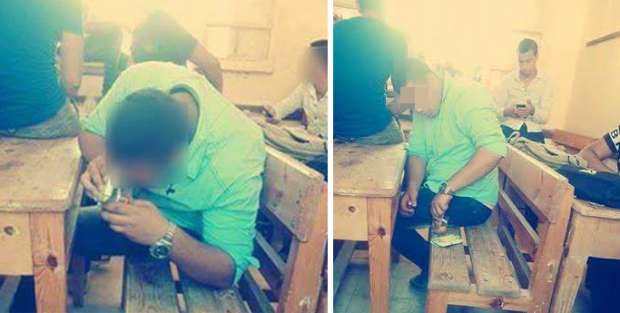 وفي مدرسة أخرى، وعلى طريقة “مدرسة المشاغبين”، جلب أحد الطلاب معه مستلزمات في إحدى المدارس ليستخدمها في “لف السجاير”، متخذًا من المقعد ساترًا ليداري فعله السلبي، والقتطت له صورة أثناء “لف السجاير” وتم تداولها على مواقع التواصل الاجتماعي.