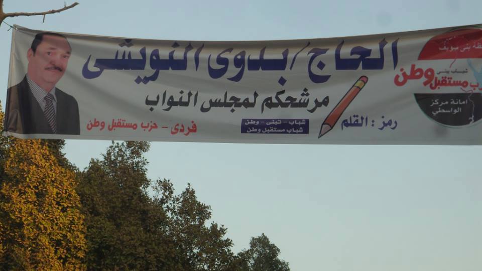 تشهد شوارع مركز الواسطى ببني سويف انتشارًا كبيرًا للدعايا الانتخابية بأشكالها المختلفة سواء كانت ملصقات أو لافتات أو حملات فردية على استحياء للمرشحين لجذب الأصوات .