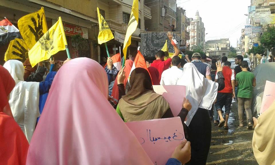 ونظم  شباب ضد الانقلاب والتحالف الوطنى لدعم الشرعيه بقويسنا سلسله بشريه حاشدة على طريق قويسنا – كفر هلال لدعم الفلسطينين تحت شعار “فلسطين تنتفض‬”.