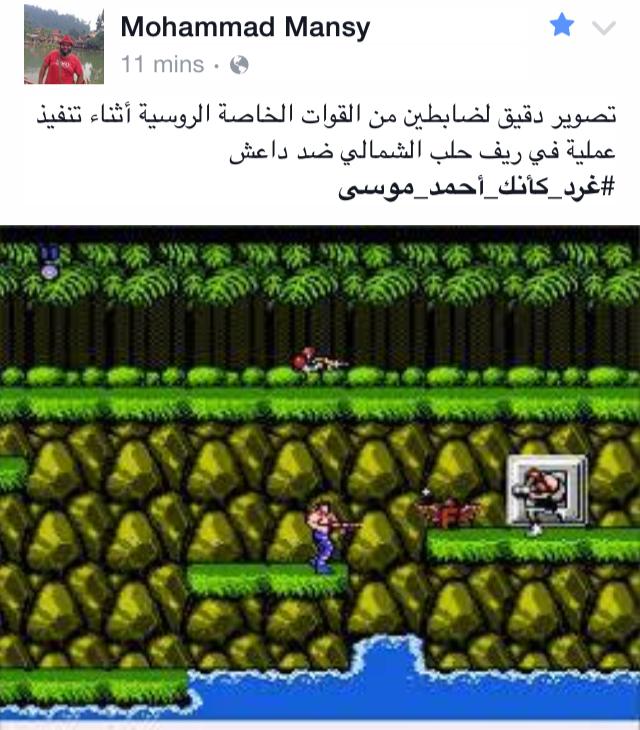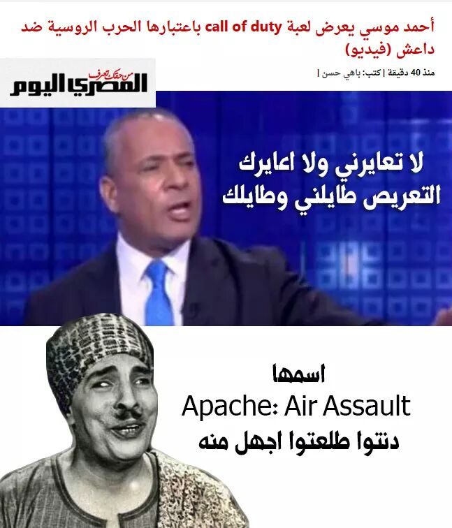 موجة من التعليقات الساخرة و”الكوميكسات”؛ من إذاعة الإعلامي أحمد موسى مقطع فيديو من لعبة قديمة على أنه تسجيل من سوريا للطيران الروسي وهو يضرب “داعش”.