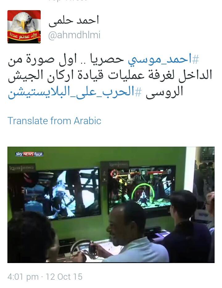 قام الإعلامي أحمد موسى، المقرب من الجهات الأمنية، ومقدم برنامج “على مسؤوليتي” على قناة “صدى البلد”، ببث مقطع مصور للعبة شهيرة، مدعيا أنه تسجيلات من هجمات الجيش الروسي على معاقل تنظيم “الدولة” في سوريا، معلقا بقوله: “روسيا مابتهزرش.. أمريكا هي اللي كانت بتلعب”.