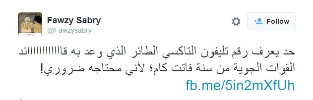 كما سخرFawzy Sabry  قائلًا: “حد يعرف رقم تليفون التاكسي الطائر الذي وعد به قاااااااااااائد القوات الجوية من سنة فاتت كام؛ لأني محتاجه ضروري!.